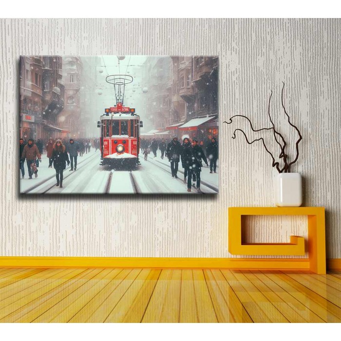 Beyoğlu İstiklal Caddesi Tramvay Dijital Grafik Yatay Kanvas Tablo dkmr294