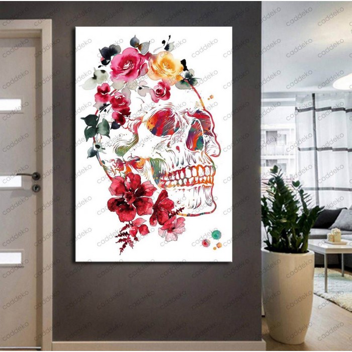 Ağız ve Diş Sağlığı Poliklinikleri ve diş hastanelerinde hastaların daha güzel ve hoş bir ortamda ağarlanması için, özel tasarım kafatası ve çiçekler.  Duvar dekorasyonunuzu renklendirip canlandıracak, birbirinden güzel ağız, diş, çene ve dişçi konulu tablolar.