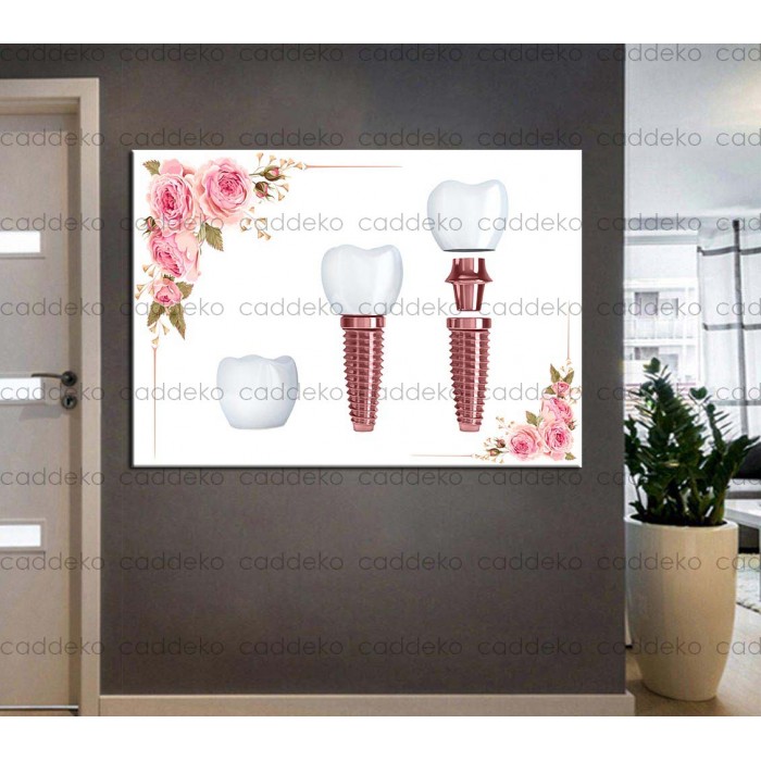 Ağız ve Diş Sağlığı Poliklinikleri ve diş hastanelerinde hastaların daha güzel ve hoş bir ortamda ağarlanması için özel tasarım çene bölgesinde beyaz ve doğal dişleri kaplayan floral çiçek  desenleri ile  duvar dekorasyonunuzu renklendirip canlandıracak, birbirinden güzel ağız, diş, çene ve dişçi konulu tablolar.
