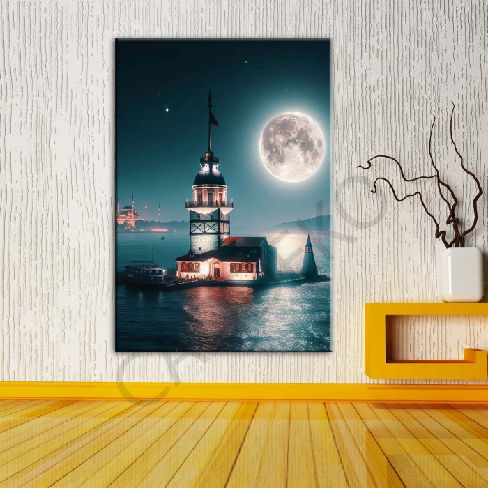 İstabul Kızkulesi Dolunay Fantastik Gece 2 Dekoratif Kanvas Tablo dkmr475