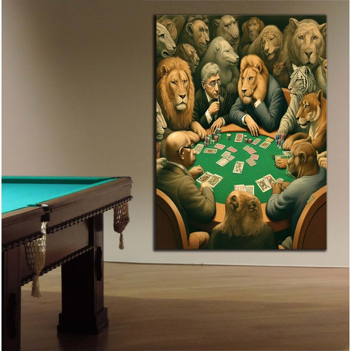 Poker Oynayan Hayvanlar Tablosu, Poker Gecesi tablosu oyun salonları dekorasyonu için özel tasarlanmış bir modeldir.