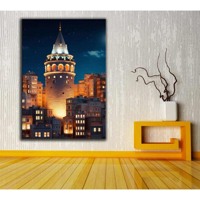 Galata Kulesi İstanbul Fantastik Masalsı Gece Kanvas Tablo dkmr276