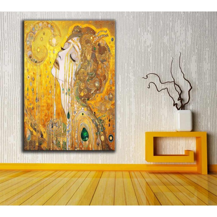 Gustav Klimt'in Freya'nın Gözyaşları (Freya's Tears) isimli ünlü eserinin modern çizgilerle yeniden yorumlanmış hali. Bu eşsiz kanvas tablo sadece Dekomani.com'da.