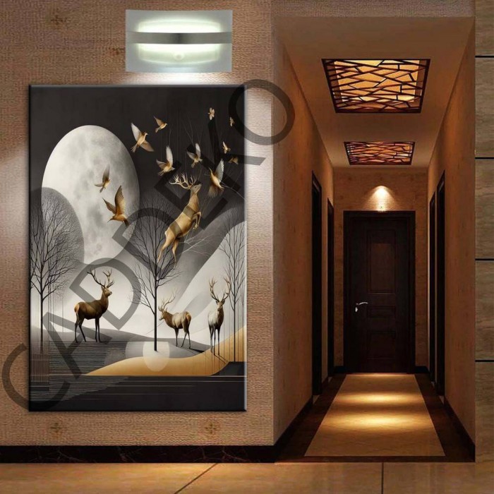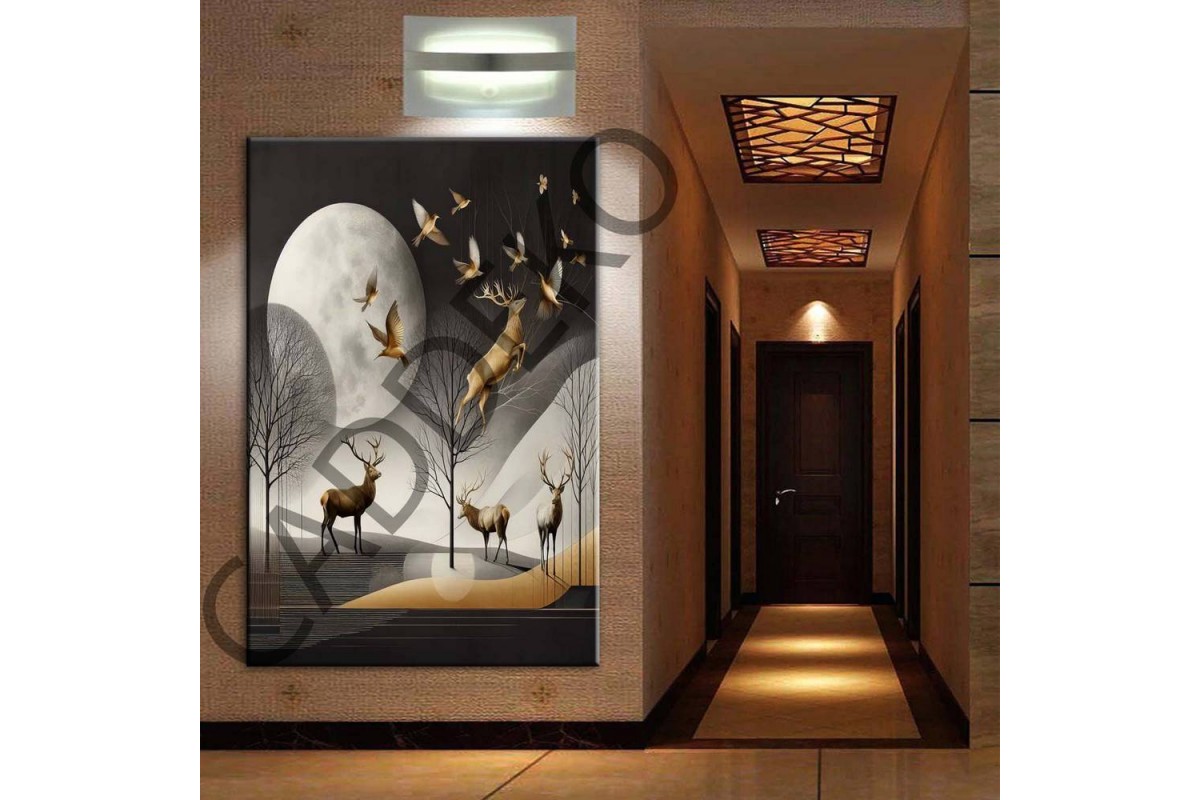Geyikler ve Kuşlar Fantastik Kanvas Tablo dkmr347