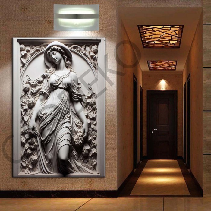 Taş Görünümlü Şapkalı Kadın Dekoratif Kanvas Tablo dkmr413