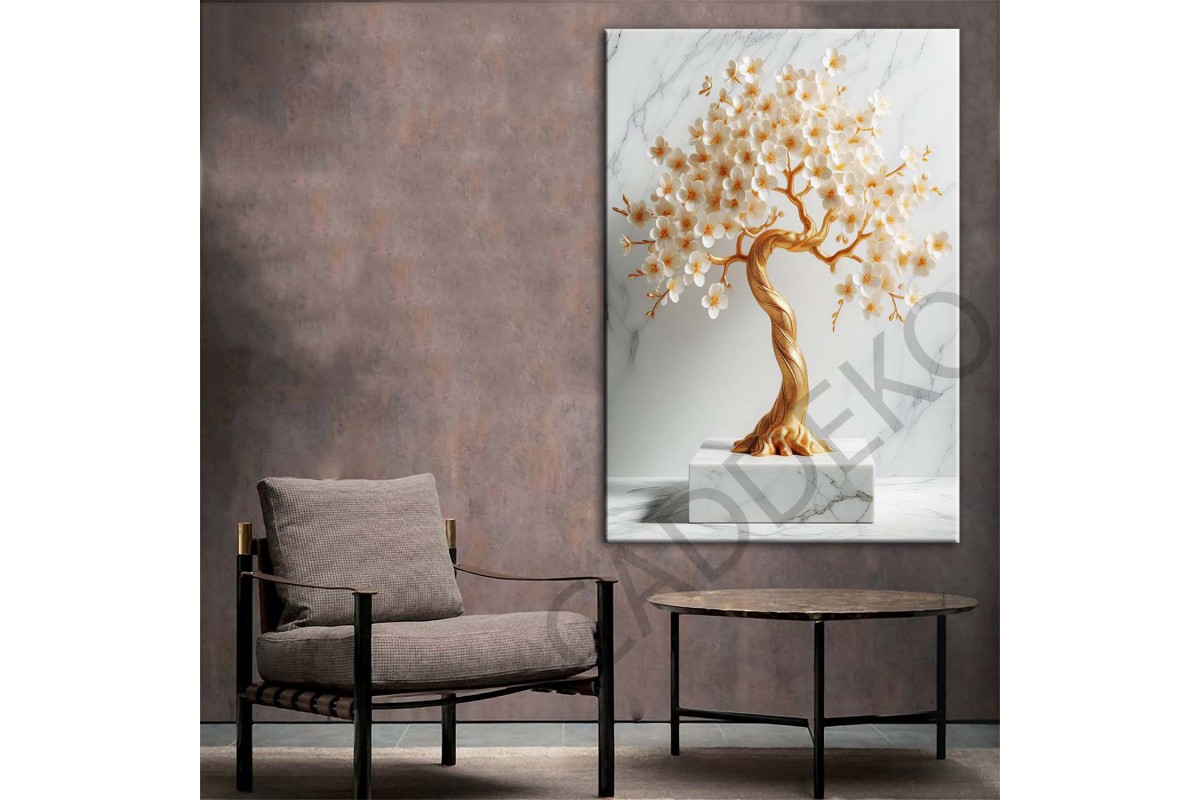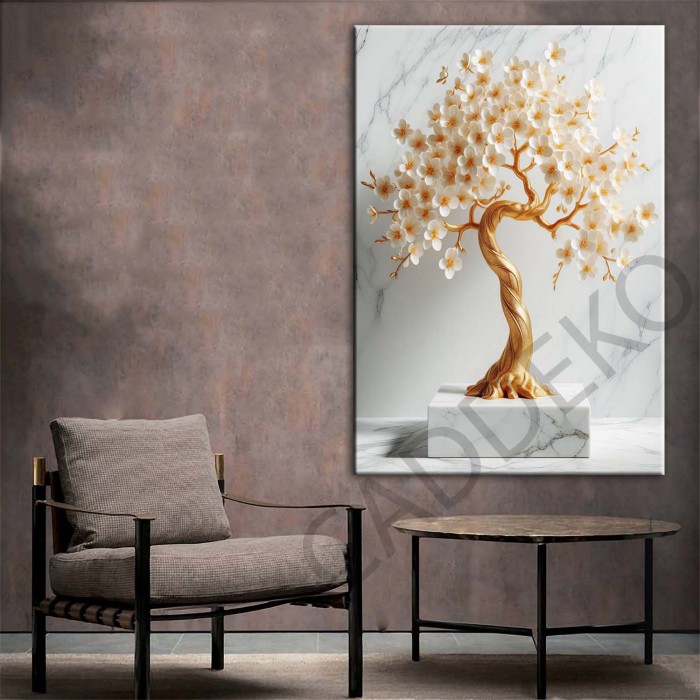 Beyaz Uzakdoğu Çiçekleri Gold 4 Dekoratif Kanvas Tablo dkmr444